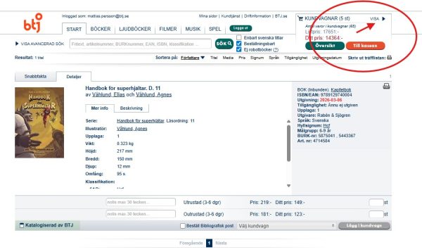 Detta gäller även böcker som inte är katalogiserade än – Vi katalogiserar alltså allting som du som kund på Bibliografisk Service köper ifrån BTJ.